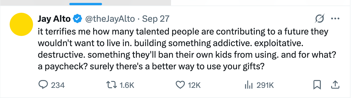 Why can’t you just be happy as a big company? Why does Meta need to keep finding ways to extract more attention from its users and turn that into more ad revenue for themselves? Couldn’t they have better served society by just being a good place to stay in touch with people you know? Why do we live in a world where it would be thought of as bad business for them to just focus on making Instagram the best possible way to share photos with your friends?