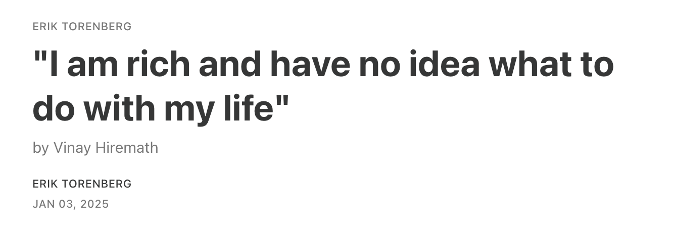 So we are narrowing our options to optimize for the highest income. Not a groundbreaking revelation. But still kind of strange as it compounds. Every decision we make getting further away from the things that make us happy in pursuit of a currency that we hope will potentially unlock the happiness we missed sometime in the indeterminate future.